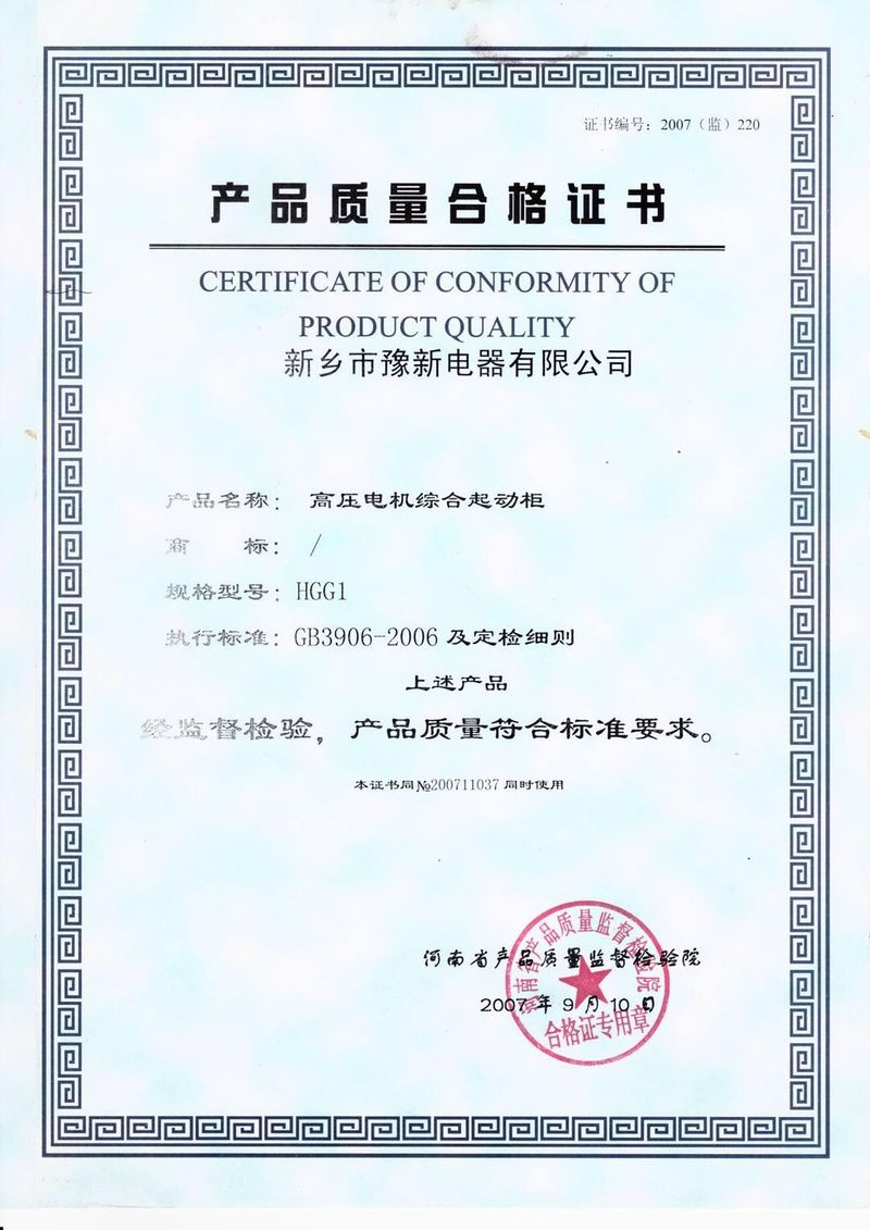 新鄉(xiāng)市豫新電器設備有限公司是一家高低壓配電電網長期供應商!是原輝縣市電器成套廠,1993被國家列為電機啟動柜主要生產廠家。